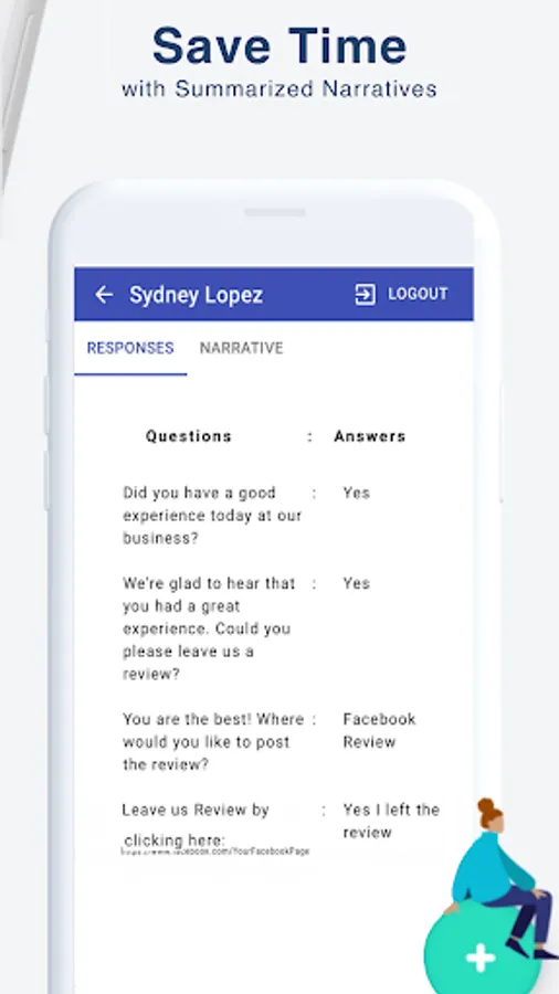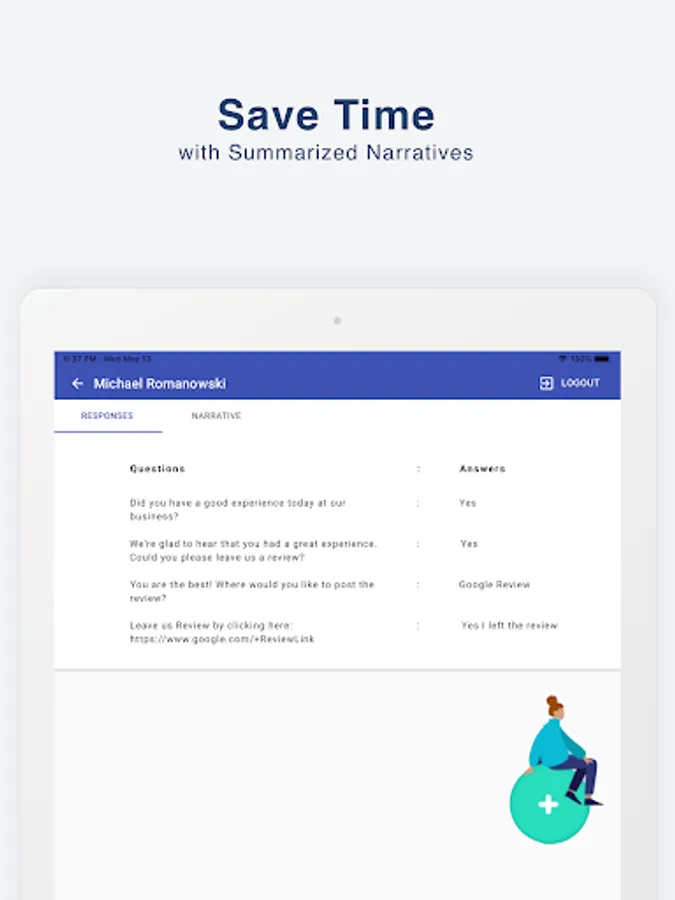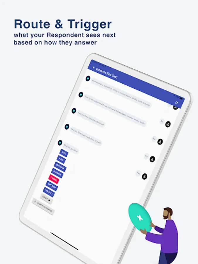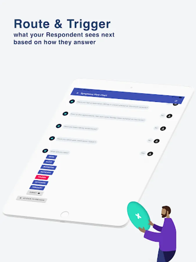 Your respondents will then answer your smart and dynamic survey questionnaire through this mobile companion app. All their responses are saved for you and presented in a narrative form.