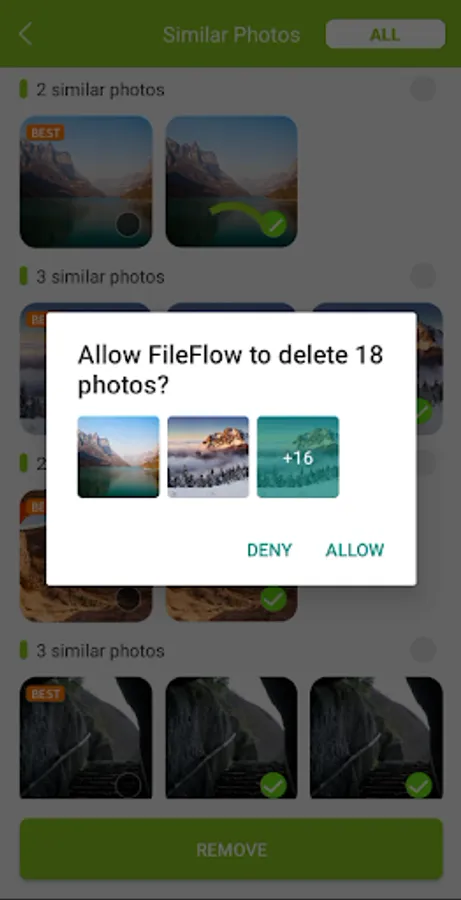 Are duplicated or similar pictures taking up your device's storage? FileFlow allows you to delete all versions of the same picture at once – freeing up your storage in the process.