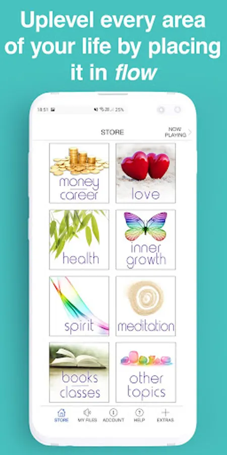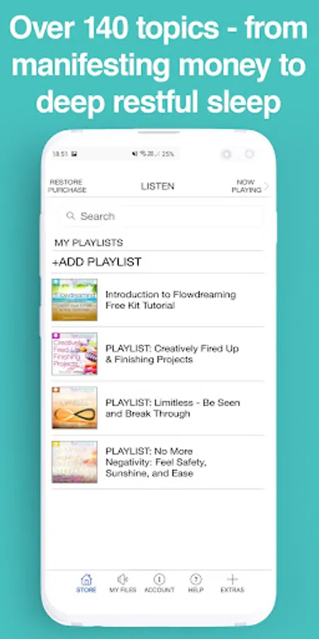 After you log in, go to "MY FILES" inside the app to start your journey. Then feel free to browse the shop, which contains over 140 Flowdreams on all kinds of topics, such as: