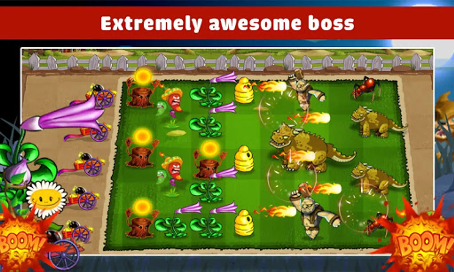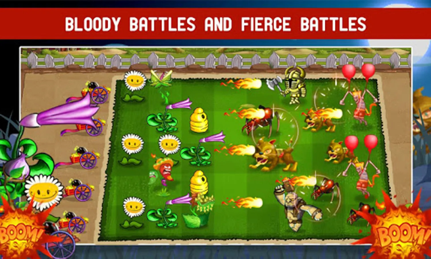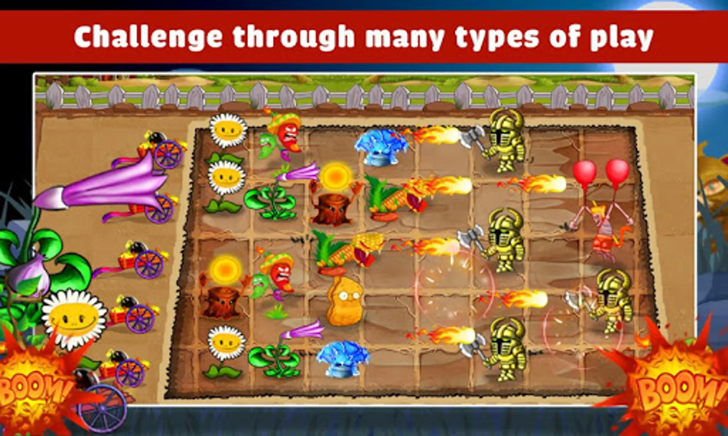 In the role of the King of kingdom, you have to control your fruits and plants to kill all monsters and zombies who are invading your kingdom.
