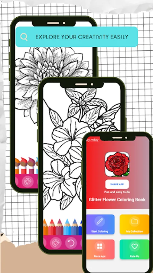 Relax and happy coloring! Glitter Flower Coloring Book and Drawing for you helps develop memory skills of everyone. Playing this coloring game will help them improve your recognition while having fun.