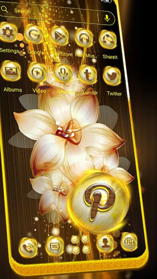 Attractive Interface: Cool wallpaper for the Flower Golden Theme device icons will bring your phone to life.