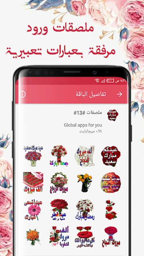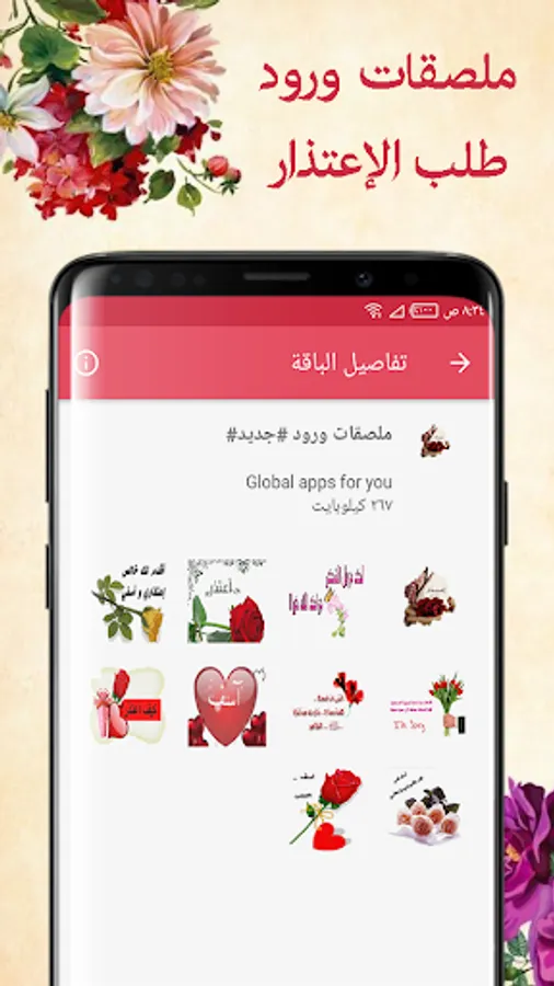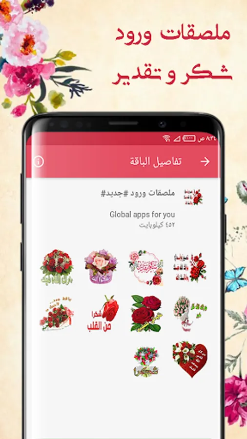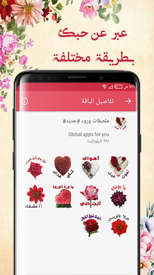 Rose stickers and flowers written on them for whats is an application in Arabic with many expressive flowers stickers and Arabic stickers that you can add to your Whatsapp in order to use them while chatting with your friends. Furthermore, our application contains: thank you stickers, congratulations stickers, Good morning flowers stickers, Good evening Arabic Stickers.