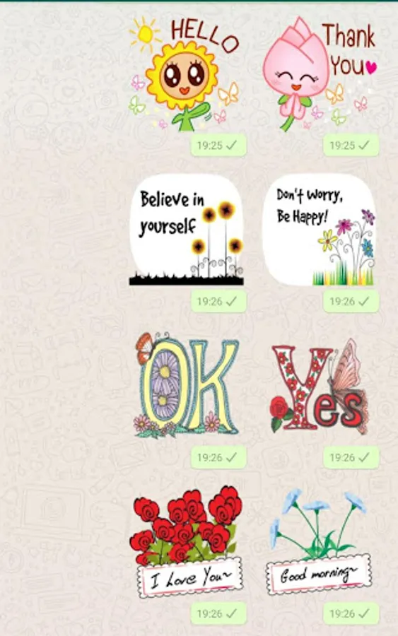 Use the Flowers stickers to send to your partner and use the Roses and Flowers stickers to express your emotions.