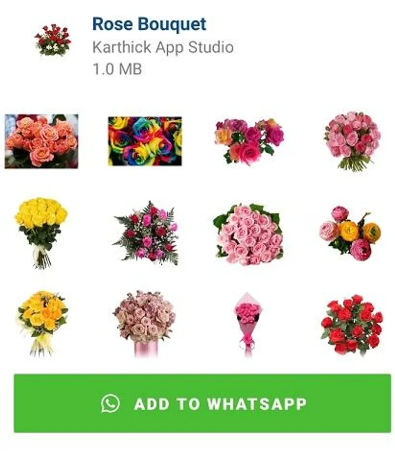 Flowers and Roses stickers for WhatsApp include: