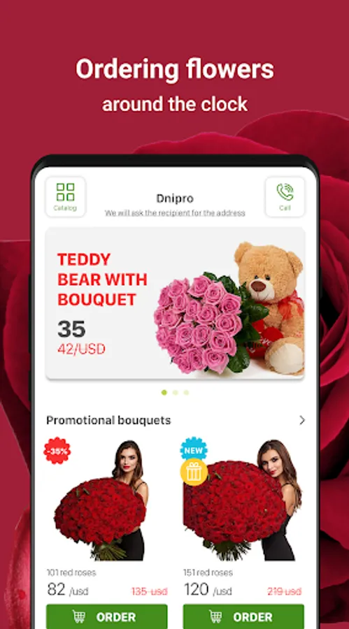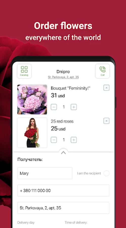 ✅ Fast and safe flower delivery: convenient tracking of all stages of bouquet making in the app.