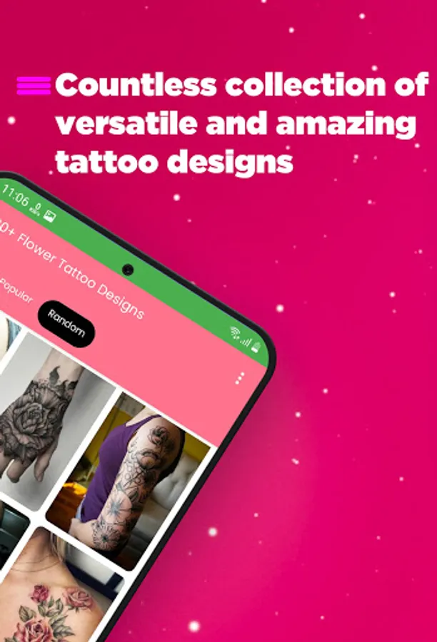 emozzy flower tattoos app provides many options to entertain you. You can enjoy universal tattoo designs with;
