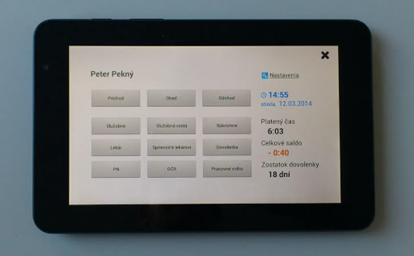 Attendance terminal FLOWii is an innovative complement attendance system www.flowii.com. Together, they constitute a modern and simple system for monitoring and recording of employees. Attendance terminal lets you track departures, arrivals, other events and interruptions spending time working through the tablet. Records from the terminal are immediately available online in attendance system. All information on the attendance you see in a table, graphs and statistics.