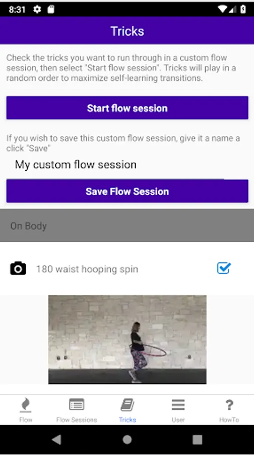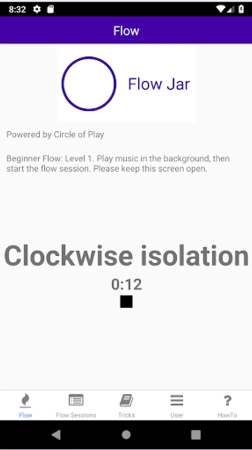 Flow Jar is an app that helps you improve your hula hooping flow. Play music in the background while the app instructs different moves to familiarize yourself with transitions and for you to get to know your hoop.