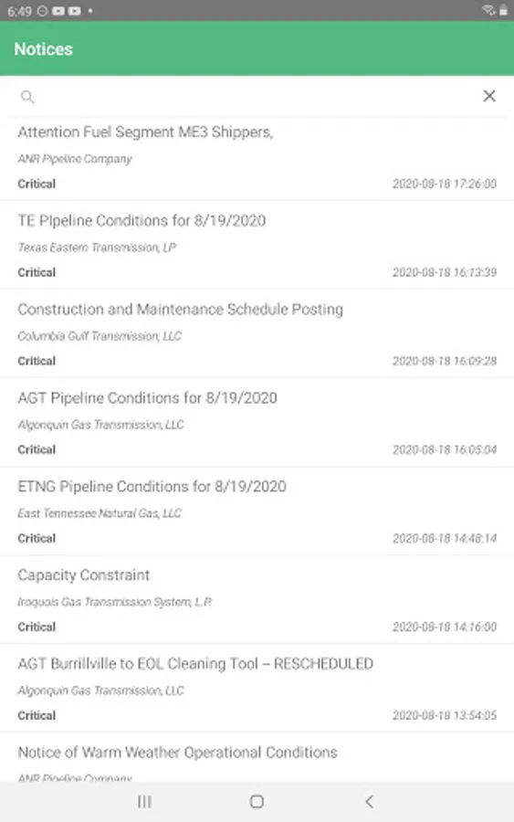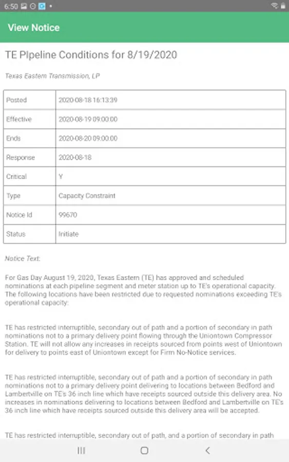 FlowNotices aggregates Critical and Non-Critical natural gas pipeline notices into one place. Have the most up to date information, search from your phone or PC, browse by Pipeline, and receive notifications directly to your phone.