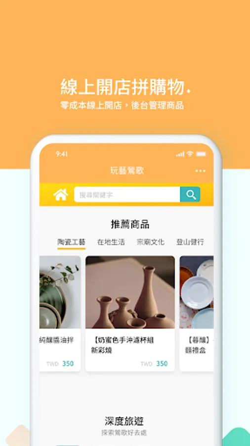 Focusing on cultural creation and tourism, the merchants in the vicinity of Yingge have been integrated into one called "Playing Arts Yingge_MIY Parent-Child Co-Creation Cultural Village". The merchants are classified into "Ceramic Crafts", "Local Life", "Zongmiao Culture" and "Cultural and Creative Artist"