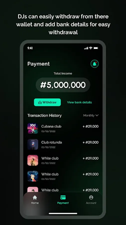 Flowrythm allows you to play songs requested by listeners and get paid while at it. You can create a schedule for an upcoming event and get alerted for the event. During the event, users get to request any song of their choice which gets played by you depending on your decision and you get paid while at it.