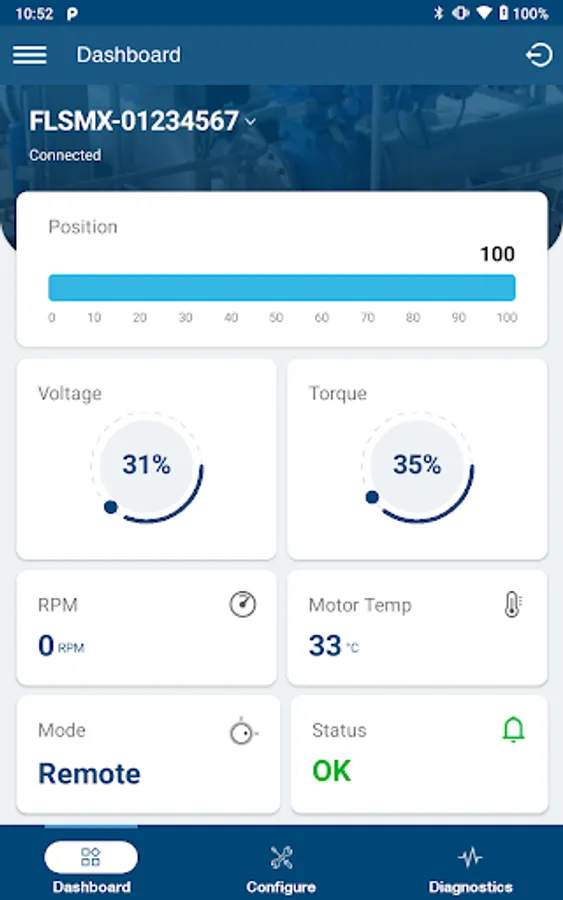 This is a Bluetooth utility designed to allow Flowserve Customer to control their MXb Smart Actuators from their IOS Tablet. This is designed to help customers who have units in hard to reach areas as they can control the unit from a distance. The large screen of a tablet also helps customers view advanced diagnostics items in a detailed way and capture screenshots to create performance reports. The app also allows customers to create Actuator Configurations which can be saved to the tablet and then pushed to one or multiple actuators without ever moving the knobs on the units.