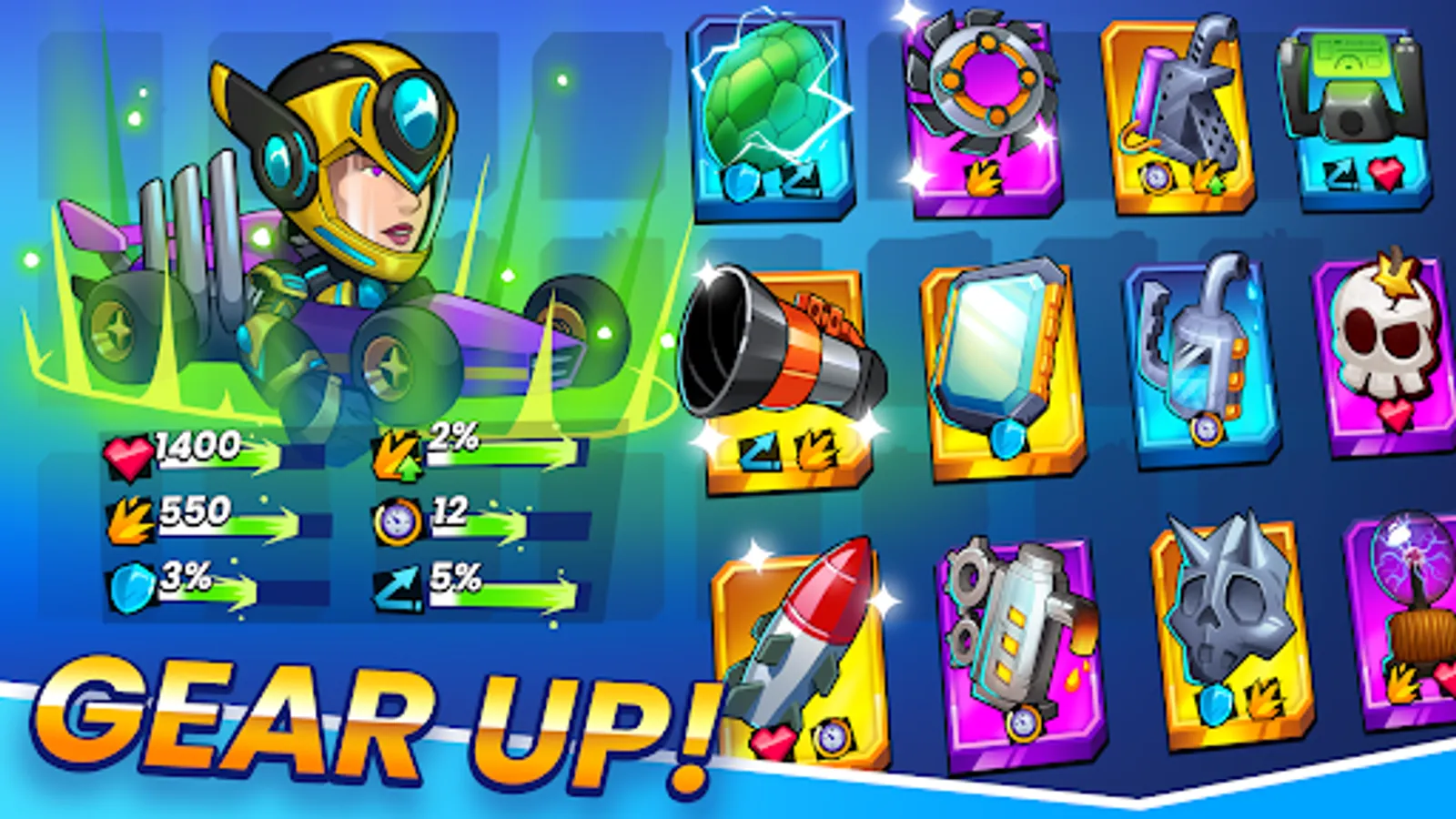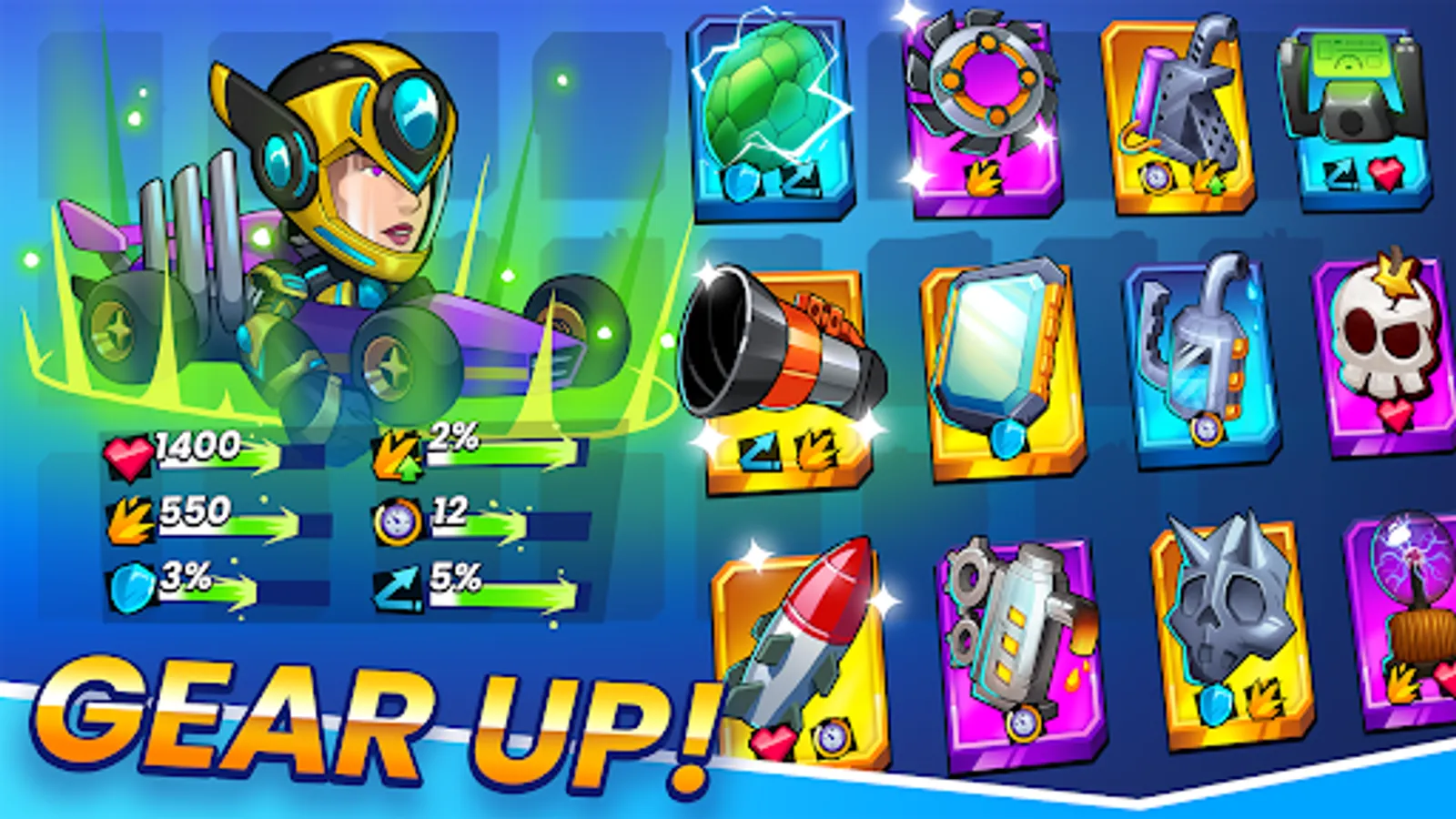 Unlock and upgrade fun new cars, powerful weapons and helpful items so you can turn the tide of battle