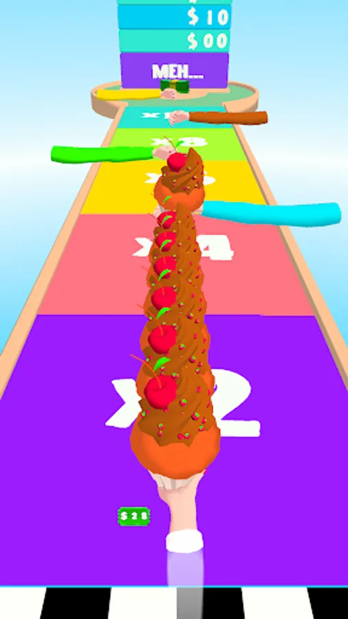 You have a chance to collect all the stacks and gather cups, fill them in different dough, stack them and earn money.