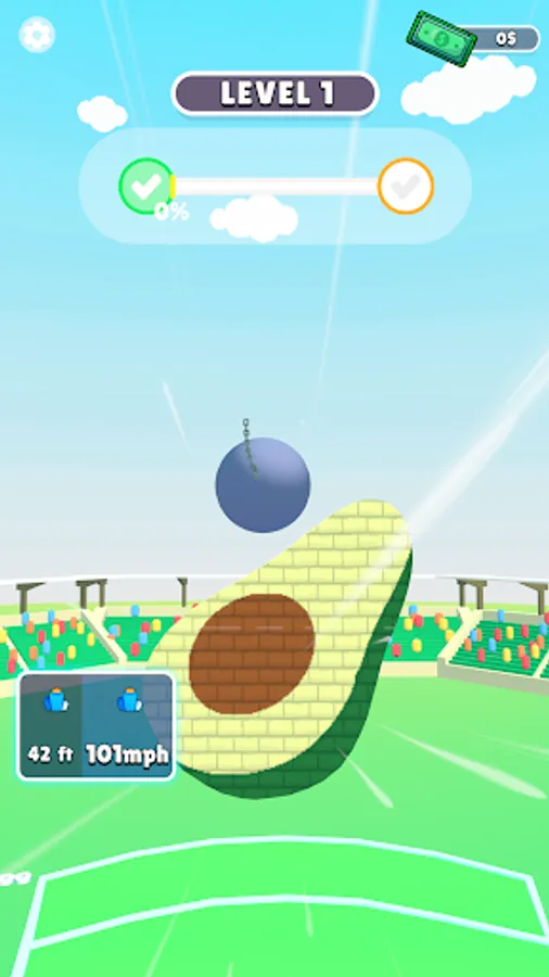 Trying to knock down those obstacles by throwing various objects to various obstacles. By setting your timing correctly, you can knock down the most obstacles in the fewest shots.