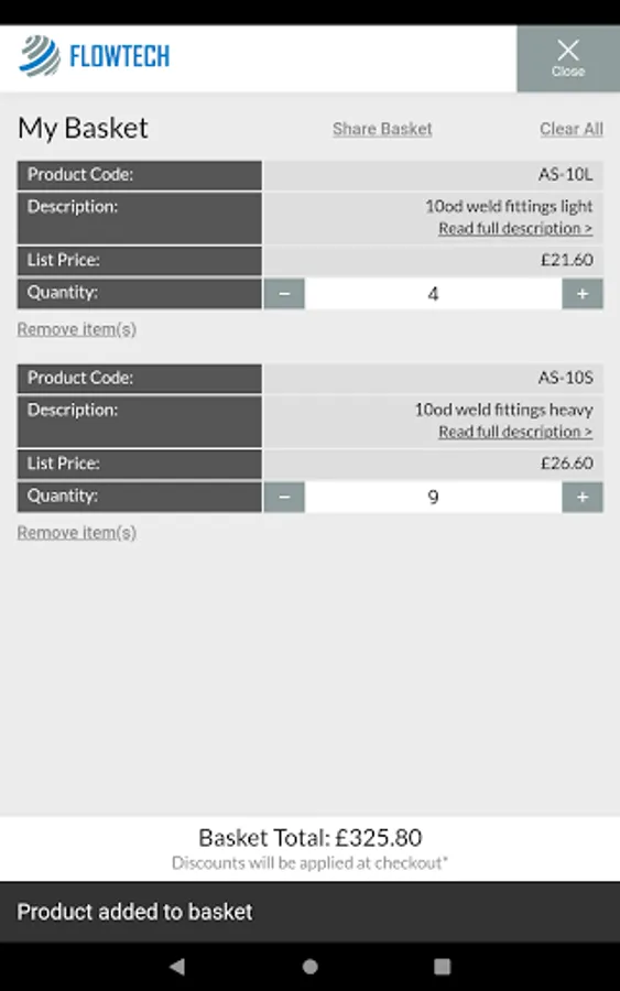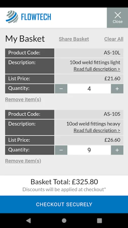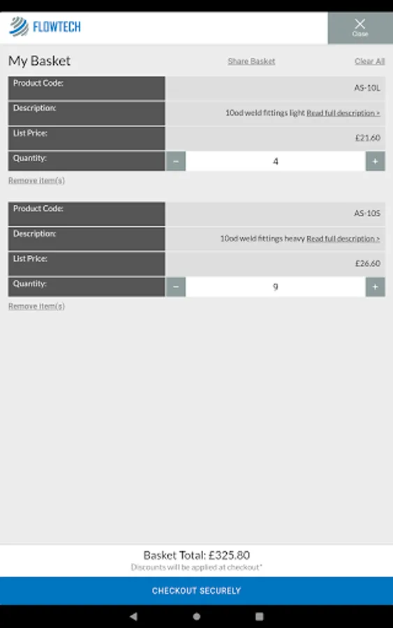 - Share basket functionality; easily share your baskets with others via clipboard/messages/mail and more