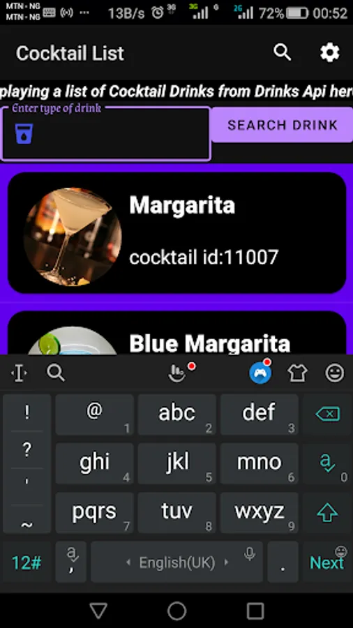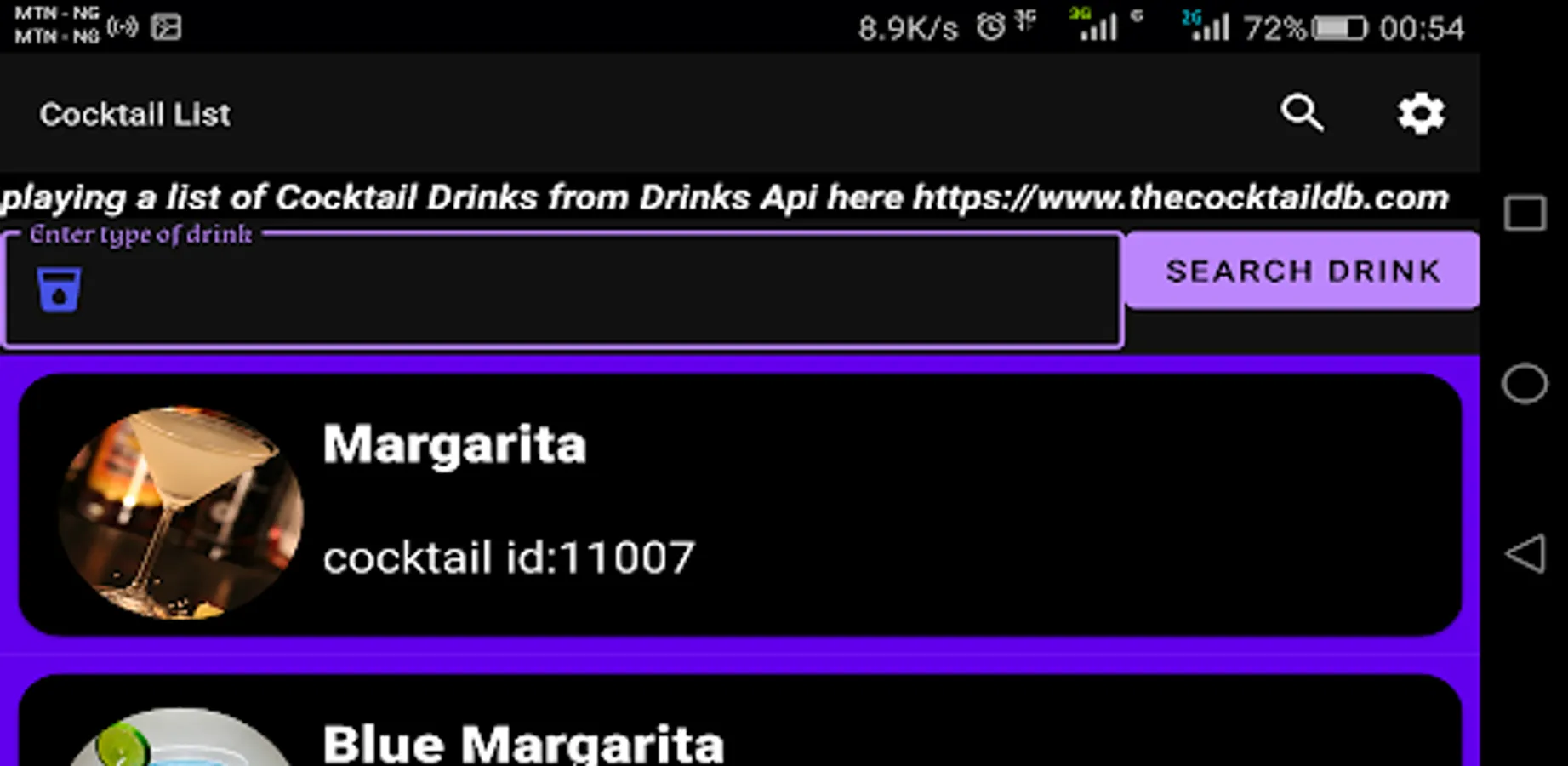 An app enables the user make the best exotic cocktail drinks out there! you search a drink name you know or heard of and it searches the Api to provide you with the ingredients and steps on how to make the drink