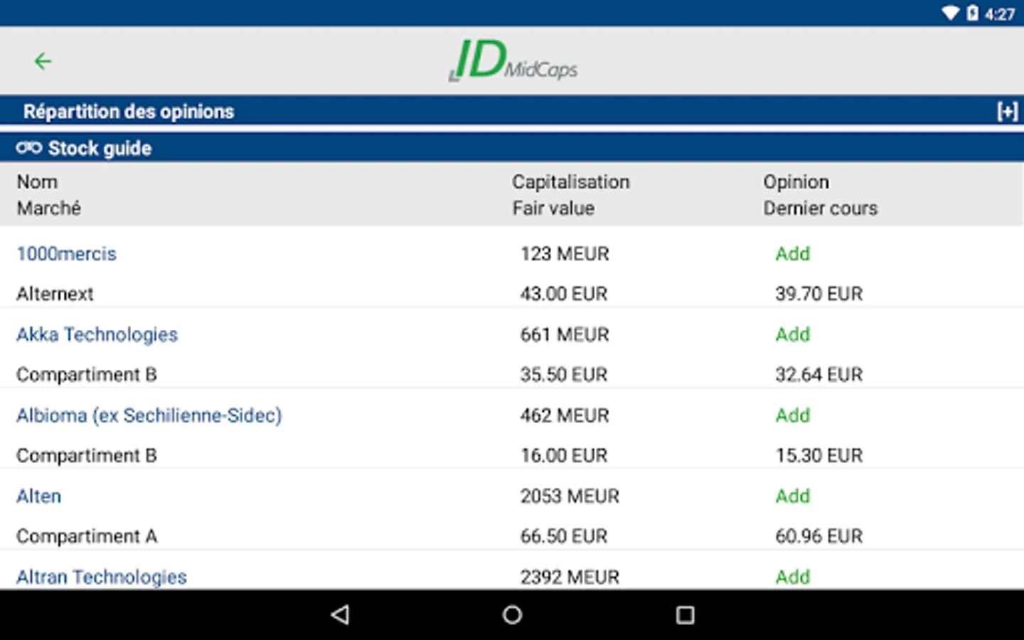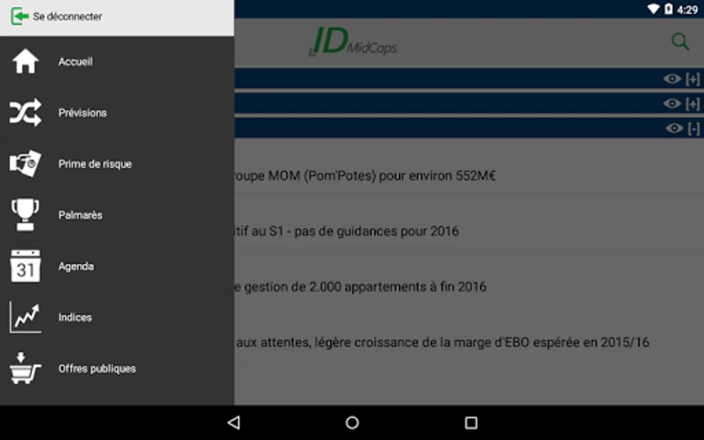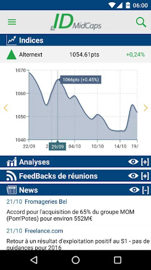 The IDMidCaps app gives you access to all of the research and millions of financial data from the IDMidCaps platform helps the investment decision, in an ergonomic version adapted to mobile use.