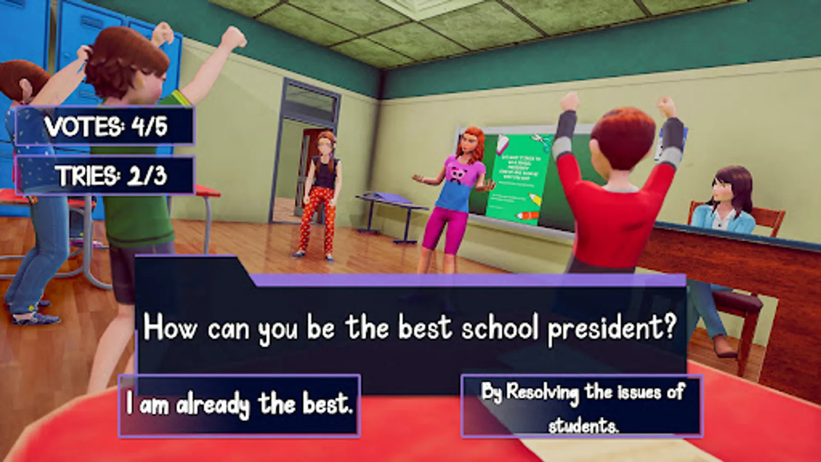 • Be a popular new girl at school and doing voting campaign in high school girl simulator