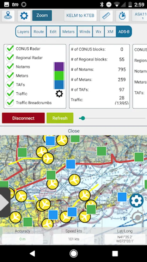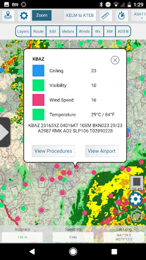 • Display METARs, Winds, and animated Weather on the map