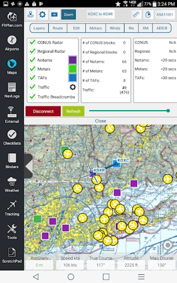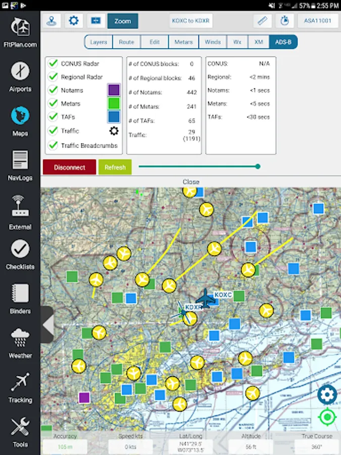 FltPlan Go delivers powerful routing, weather, mapping features, and comprehensive aviation information including: