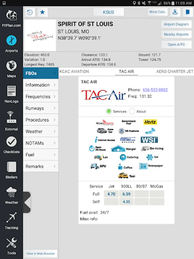 • Airport & FBO Information including current fuel prices