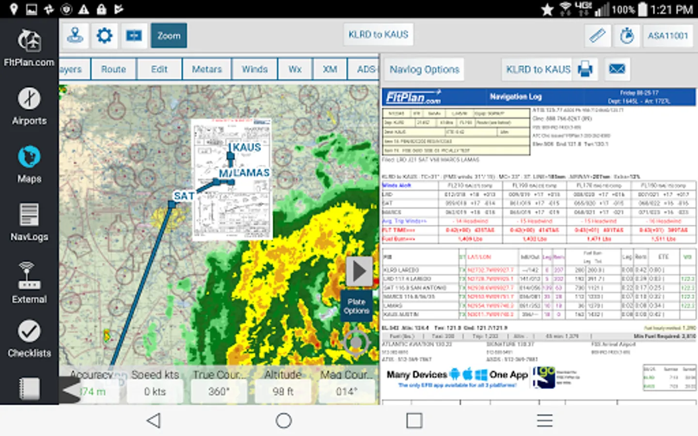 • Split Screen to view information simultaneously, including airports, procedures, NavLogs, Howgozit, Checklists, & More
