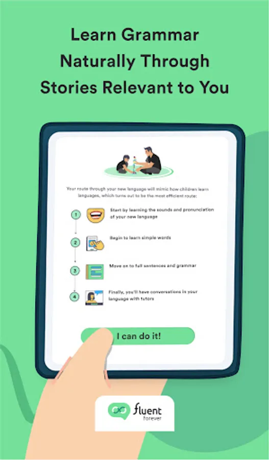 Rather than distract or briefly entertaining you like other "gamified" language apps out there, Fluent Forever doesn't waste your time with inefficient "bite size" lessons - instead, it immediately gets you correctly pronouncing and hearing the sounds of your target language, then efficiently has you learn the most frequently used words and push them into your longterm memory, and finally has you naturally build sentences using words you know and practice your speech to fluency. In short, if you're serious about speaking a new language, Fluent Forever will get you there faster.