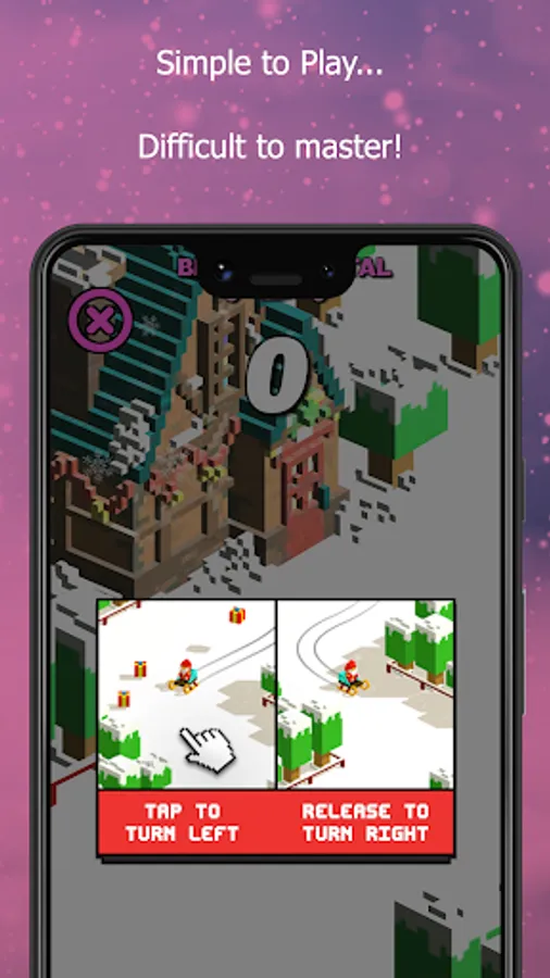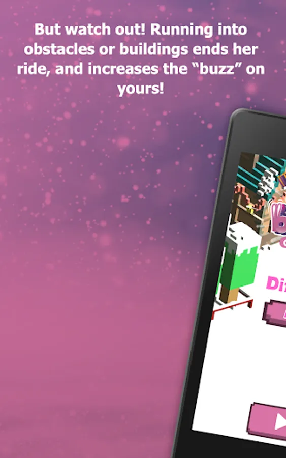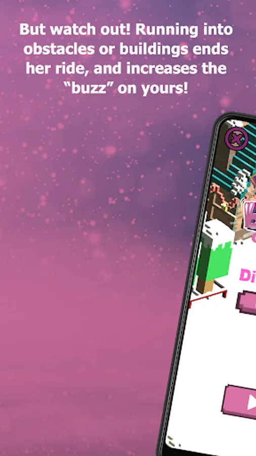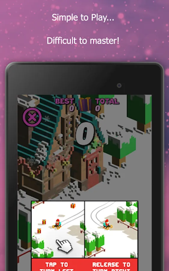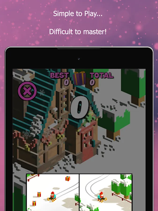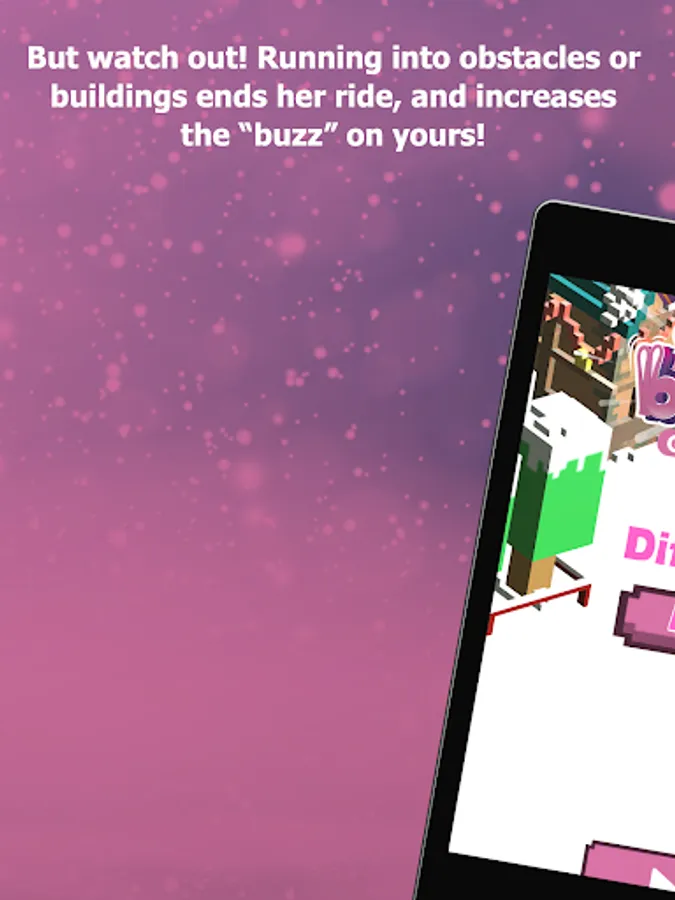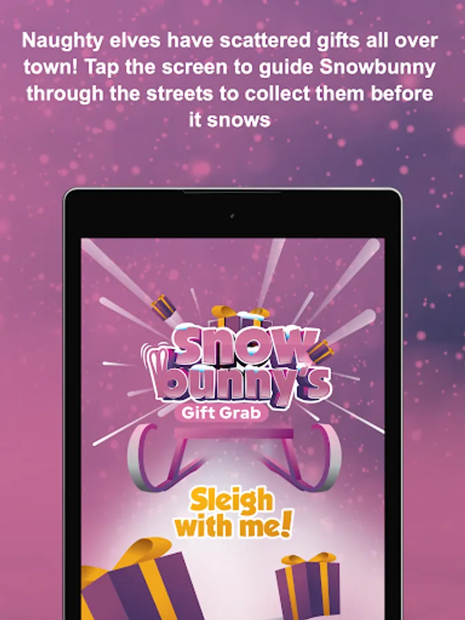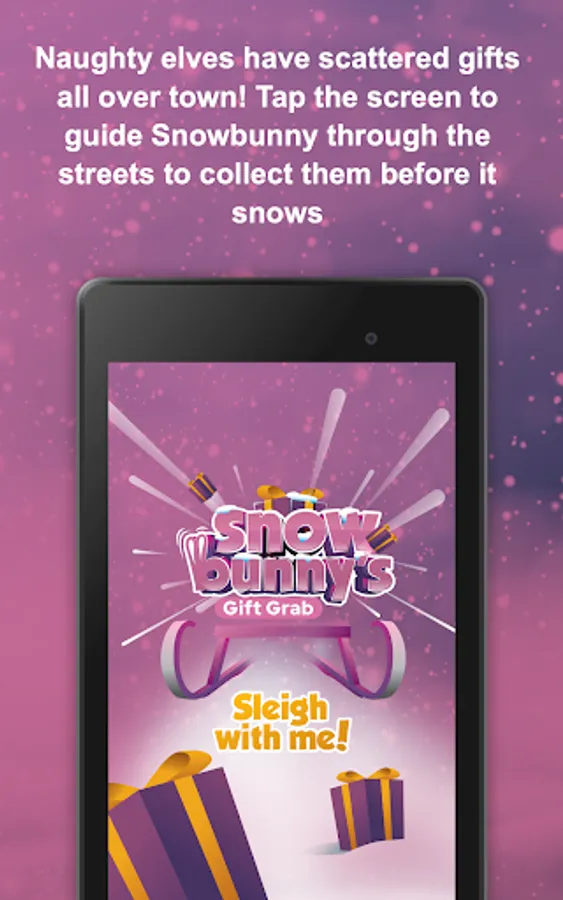 Naughty elves have scattered gifts all over town! Tap the screen to guide Snowbunny through the streets to collect them before it snows. But watch out! Running into obstacles or buildings ends her ride, and increases the “buzz” on yours!