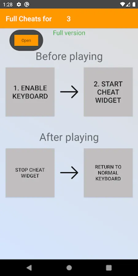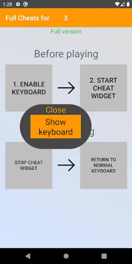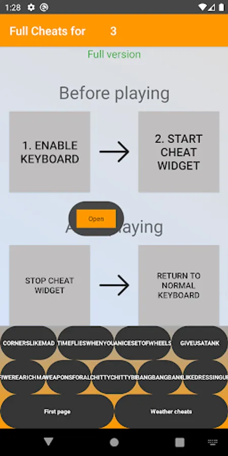Application can open floating widget, from where you can open keyboard that will let you use cheats in III game.