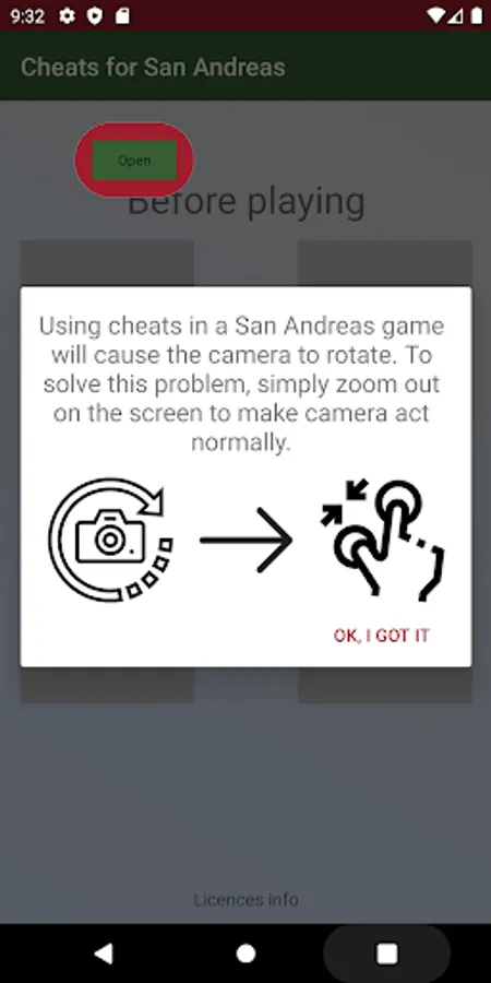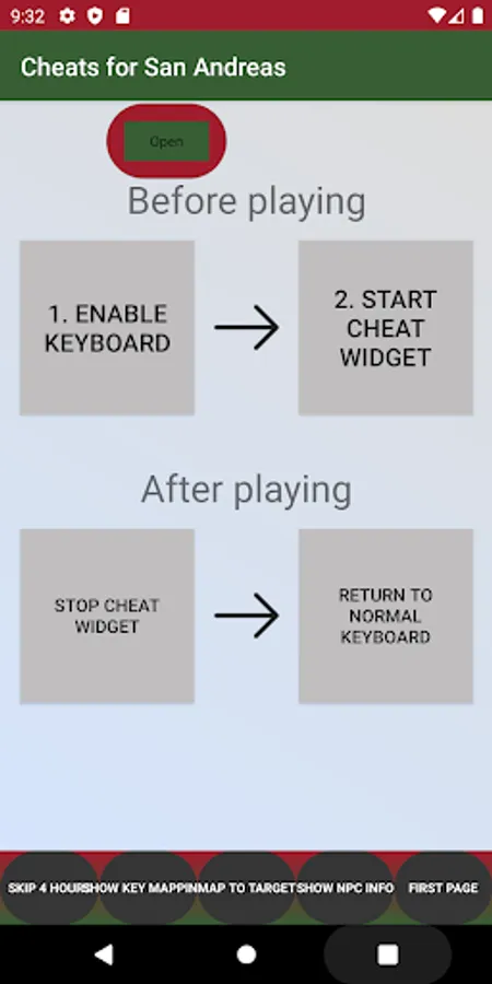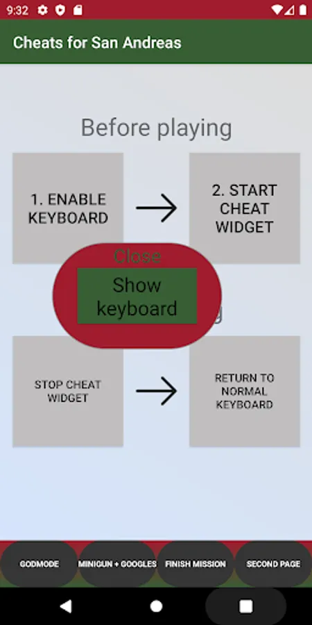Application can open floating widget, from where you can open keyboard that will let you use cheats in San Andreas game.