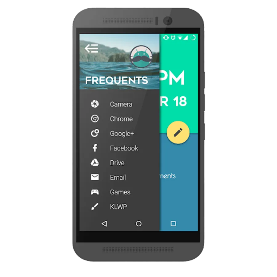 This is a free, editable theme for KLWP that employs beautiful animations with material design, all without being too cluttered.