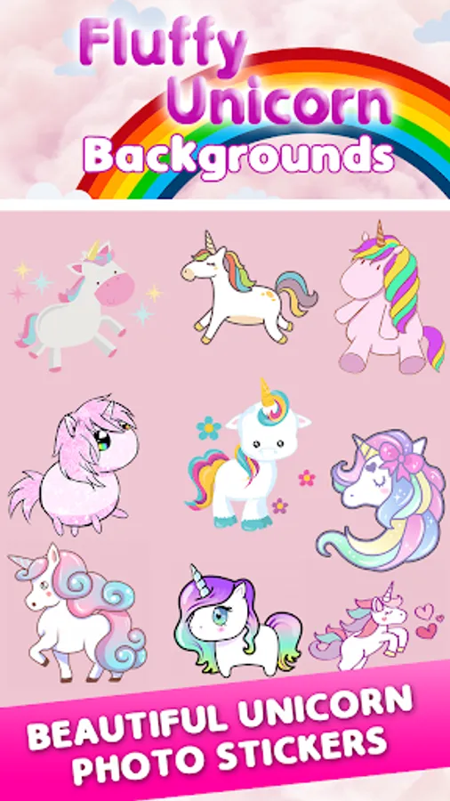 Enrich the background of your photos, and make it super cute, girly, and covered with fluffy unicorns! ''Fluffy Unicorn Background Editor'' brings the cutest unicorns to your selfies! These ultimately sweet unicorn stickers for pictures can easily become the background of your photo, with just a few clicks! Just select the cutest unicorn background and drag it to your photo! You can rotate the fluffy unicorns, change their size, and adjust them to your selfie the way you like! Make your photos even more beautiful and fluffy with these amazing backgrounds! Enjoy photo editing and brag with your work on social networks! Fluffy Unicorn Background Editor and its special ''backgrounds for your phone'' will do wonders for your pictures! Download and install this ''unicorn photo editor'' with fabulous unicorn backgrounds for your phone and look amazing on every selfie you take! If anything can make your photos even prettier, that are unicorn photo stickers as a background! Spread the magic of fluffy unicorns with Fluffy Unicorn Background Editor all over your pictures and enjoy!