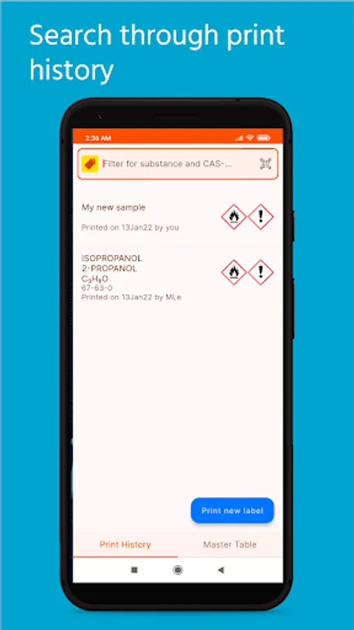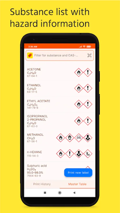 • Substance lists with hazard information can be stored as a spreadsheet.