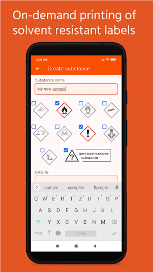 • Labels with hazard pictograms (compliant to GHS/CLP regulations) are available.
