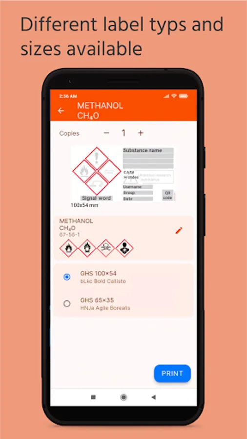 • Print labels for flasks, bottles and other containers in laboratories.