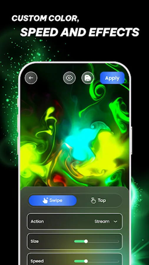 - You can draw on the screen to interact with the wallpaper, creating mesmerizing effects every time you turn on the phone.