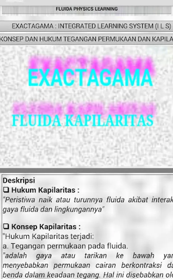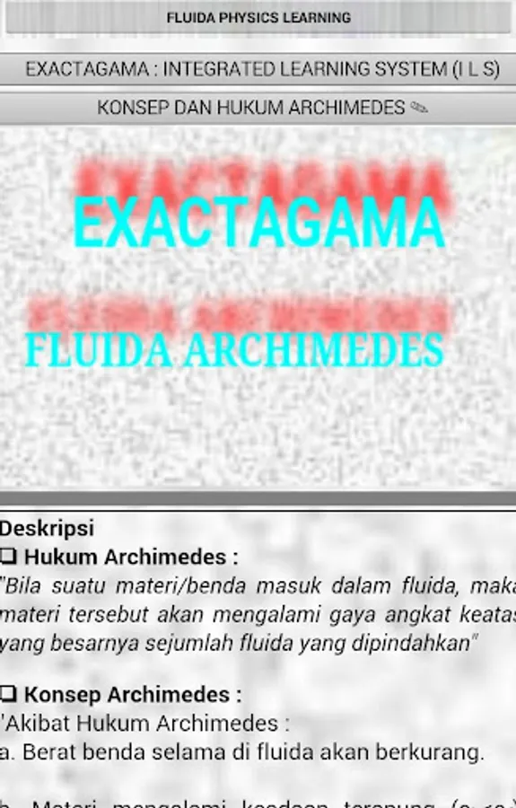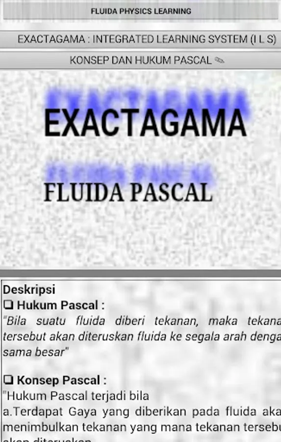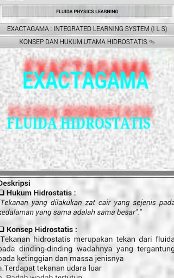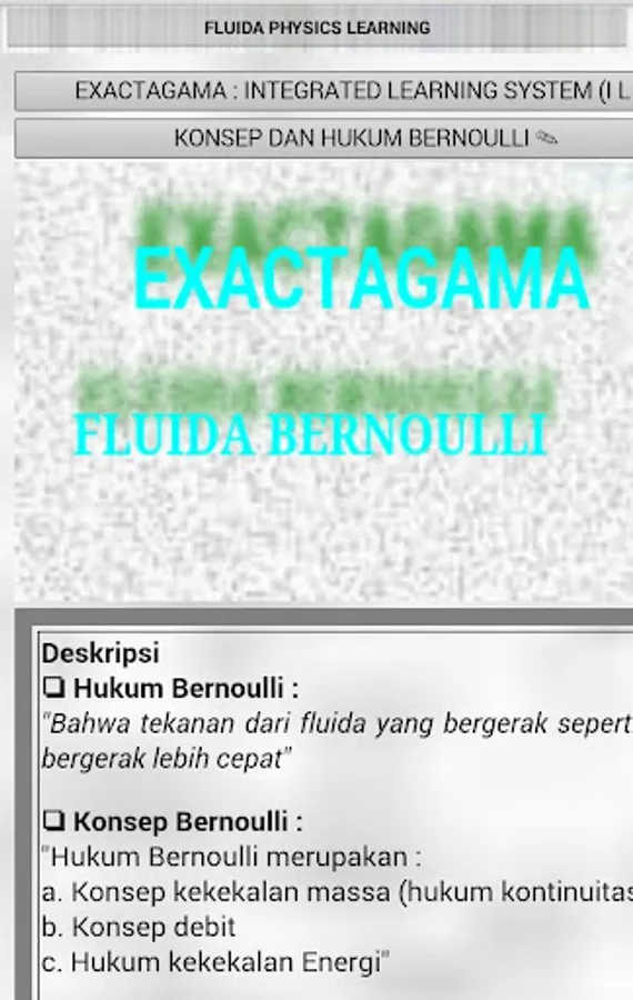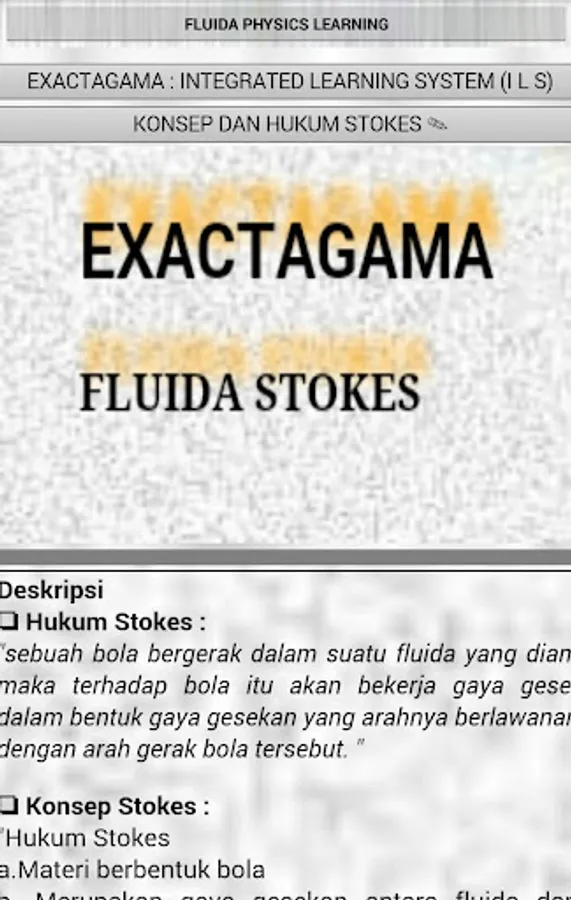 Pembelajaran fisiks fluida untuk membantu dalam memahami materi fisika fluida untuk mempermudahnya disertai deskripsi teori dan perhitungan