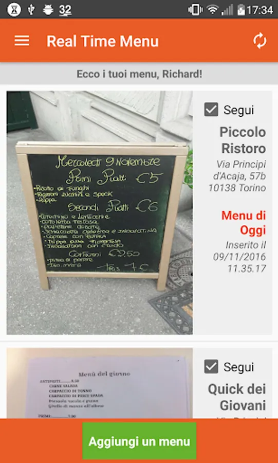 The operation is easy: put a check mark on "Follow" at the menu that you wish to receive, and each time the restaurant owner will charge a photo of the menu, you will receive in your E-mail box in real time!