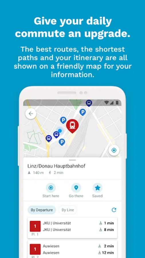 - Departures in real time: The monitor shows you the current departures at every public transport station in the greater Linz area. You'll be the first to know if there are disruptions, delays or cancellations on the bus, train or streetcar. The departure monitor helps you to make your way to work as easy and fast as possible.