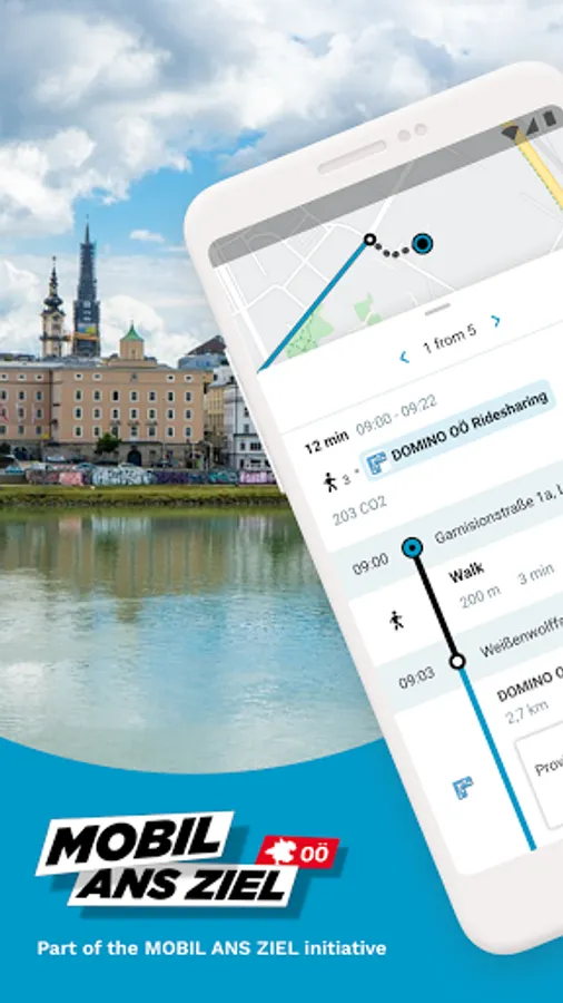 DOMINO OÖ has the best routes for you. Use the filter function to decide on your preferred type of mobility. Choose between public transport such as Linz AG Linien, ÖBB or LILO, bicycle or DOMINO OÖ Ridesharing. Sort the results e.g. by sustainability, duration, number of transfers. With just a few clicks, you'll always know how long it will take you to get to your work and when you'll arrive.