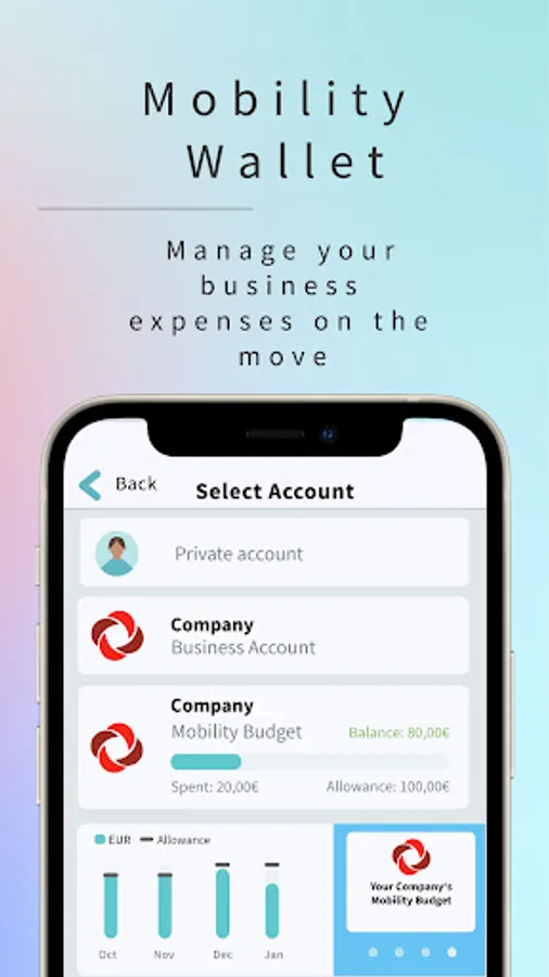 - Mobility budget: You decide how you get from A to B. Your employer can provide you with a mobility budget to pay for it. By billing your employer, you also benefit from all applicable tax advantages. Simplified booking and charging of business trips is of course possible as well.