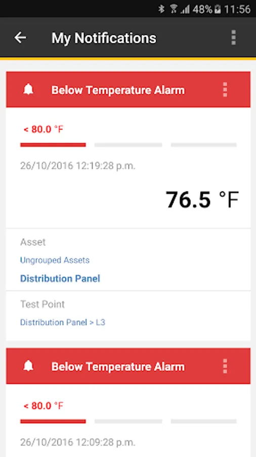 - Receive real-time alarms on your mobile device when measurements are outside of standard and custom threshold