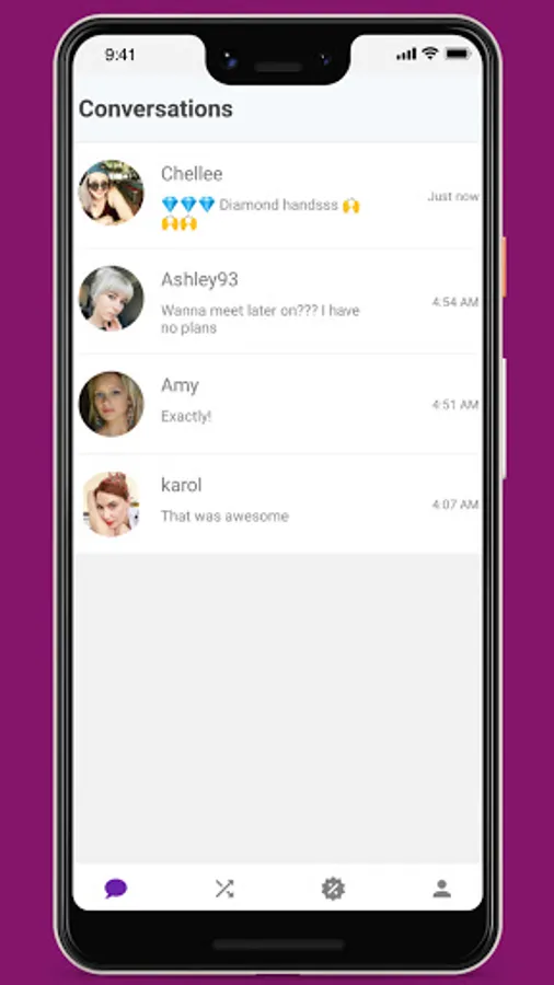 You can talk with people and make new friends while hiding your true identity. It's fun, friendly and always free way to meet new people, share their secrets and confessions.