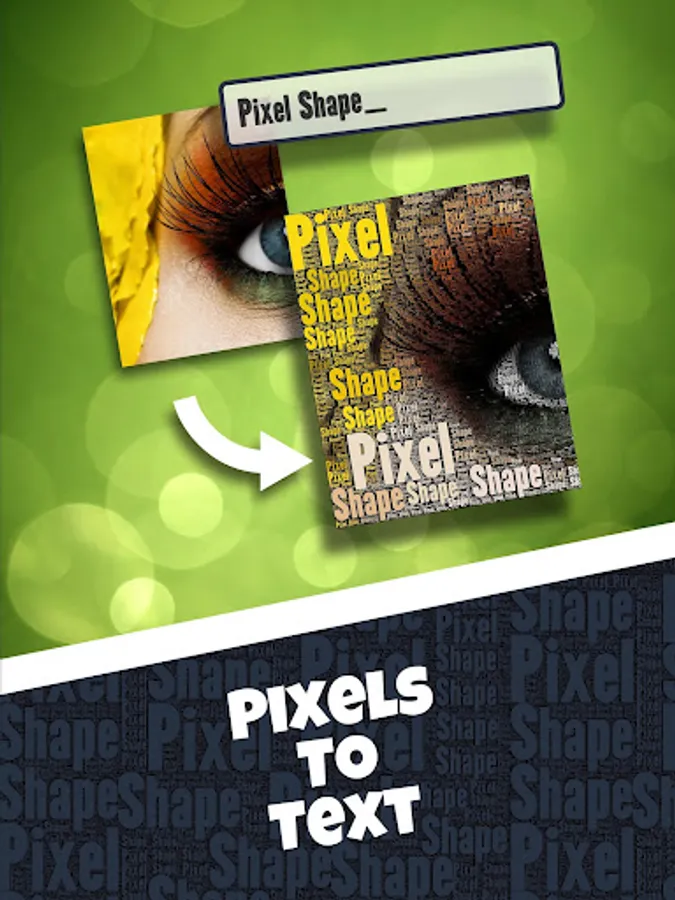 Bored of zero-dimensional pixels, replace them with words or shapes that you choose or create your own shapes to remake your pictures with them.