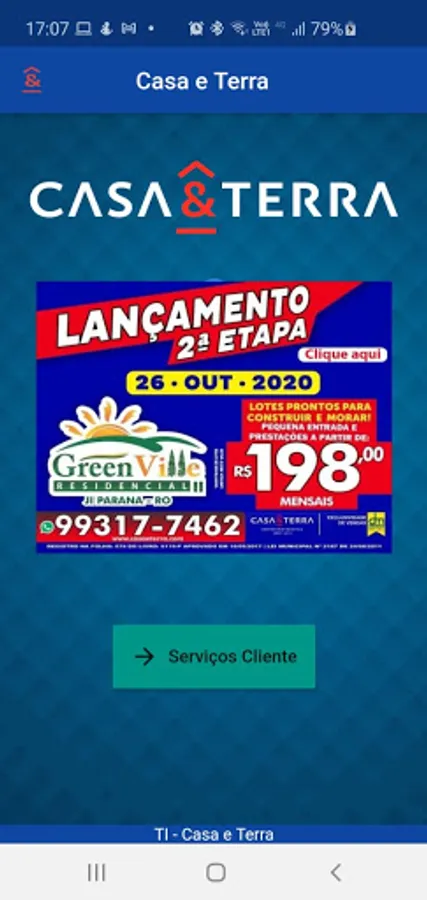 The application for customers of Casa e Terra Empreendimentos, has the following functions.