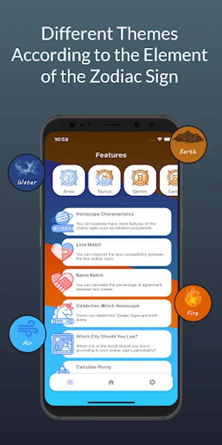 -You can change the theme of the application as air, water, fire and earth from the settings section and use it with four different color options.