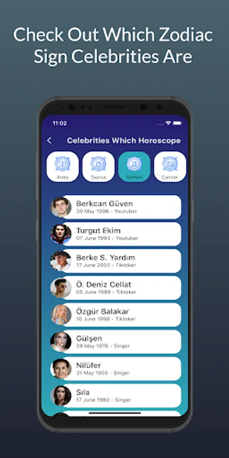-You can view celebrities who are in the same zodiac sign as you, as well as view the zodiac signs and birth dates of celebrities in other zodiac signs.