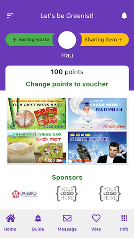 IGreen application with many functions developed for households to record the classification of their home waste and send to iGreen for verification. If the waste is properly sorted into three separate bags (plastic, inorganic, organic), users will be rewarded with points that are exchanged for valuable products. Businesses are invited to contribute products so that families can redeem points for rewards, giving them the benefits of image and brand communication. Waste collection and disposal units not only save a lot of sorting time, but also collect a lot of high-value recyclables.